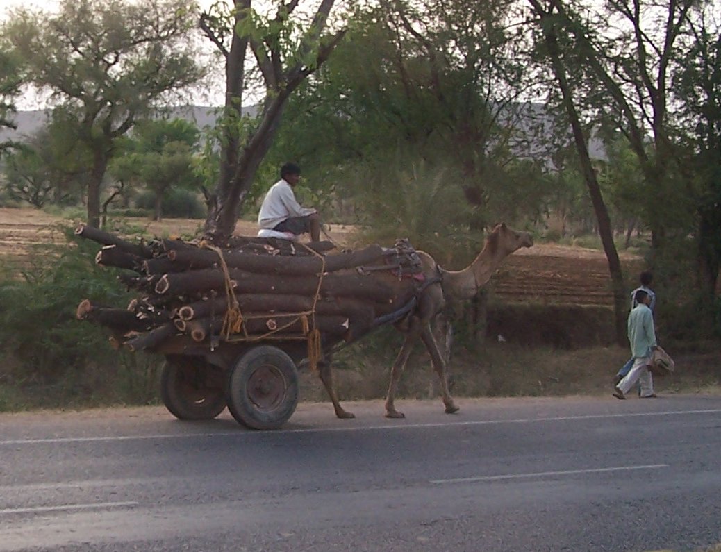 Camel train on the road between Delhi and Jaipur