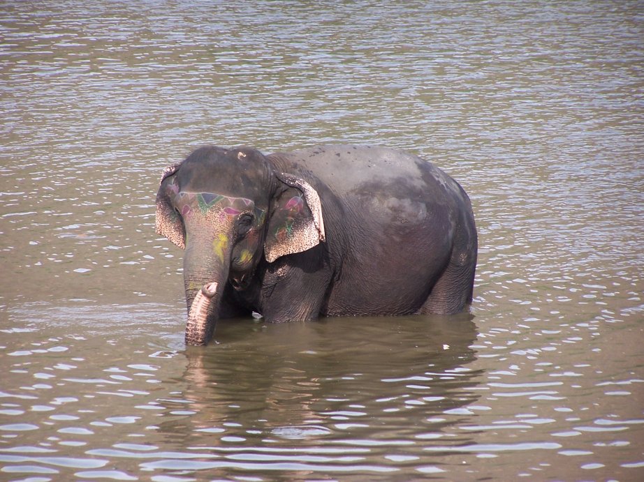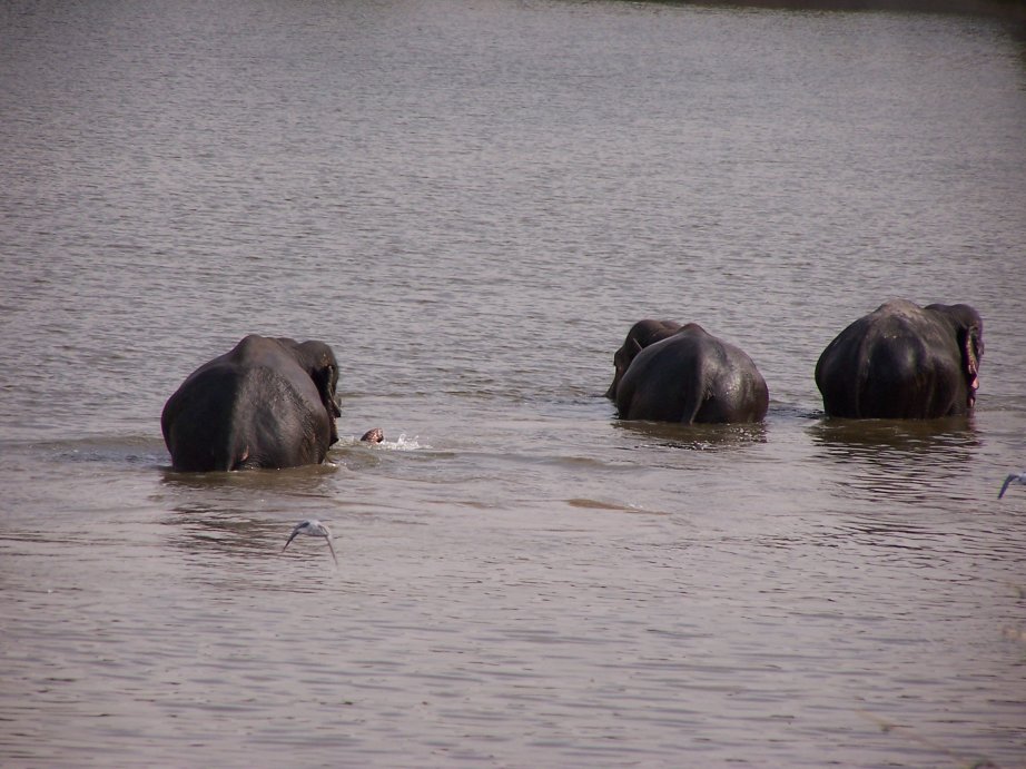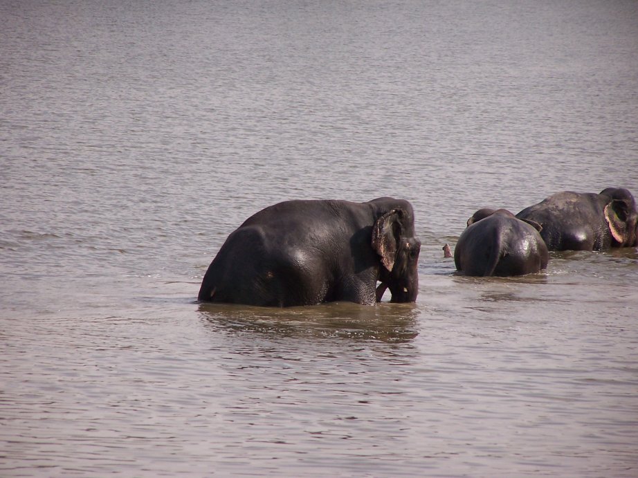 Elephants cooling themselves in the waters at Amber